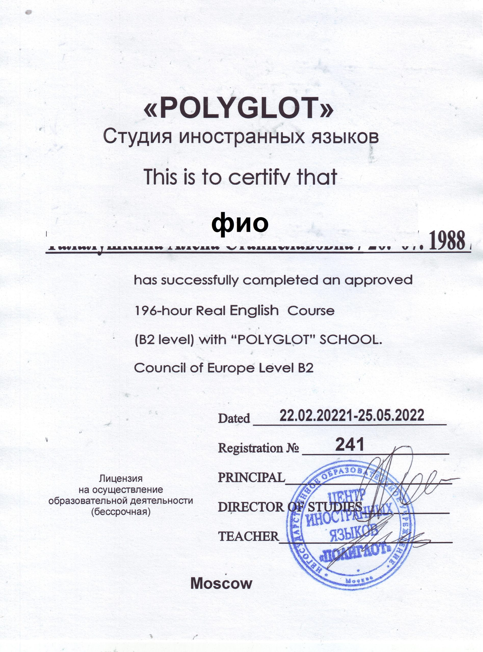 Купить сертификат английского языка уровня B1